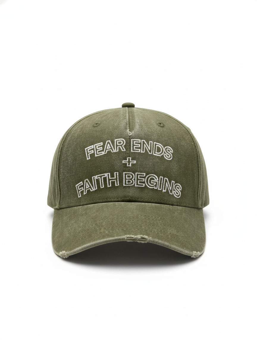 The Fear Ends Faith Begins Hat is part of the Foundation Collection, representing the moment you stop letting fear lead and start building with faith.